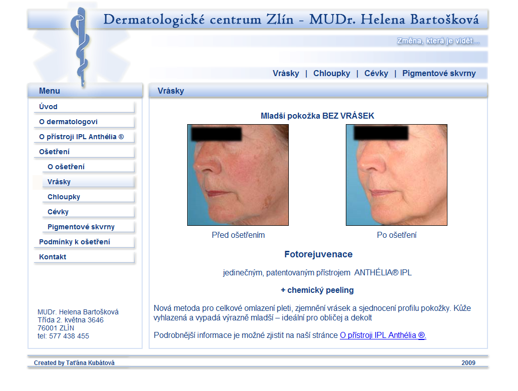 Zadavatelka byla jak se samotným vzhledem, tak i provedením velmi spokojena. Práce zahrnovala návrh, vytvoření i umístění stránek. |