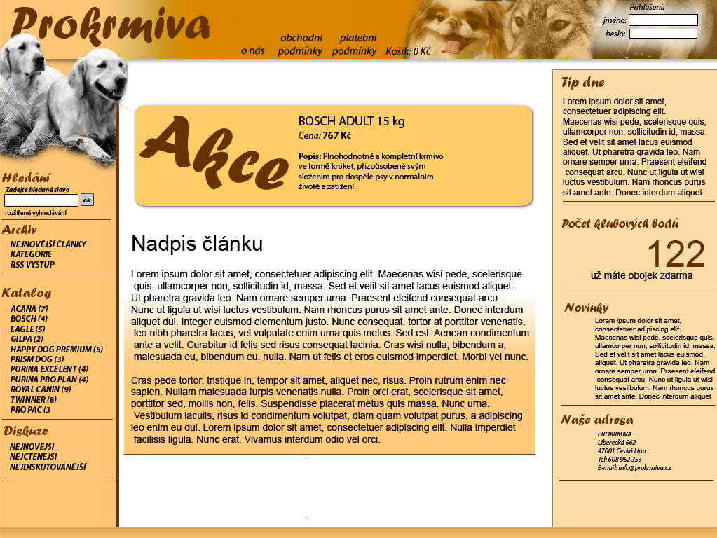 | Stránky firmy zabývající se prodejem krmin pro psi a kočky | |