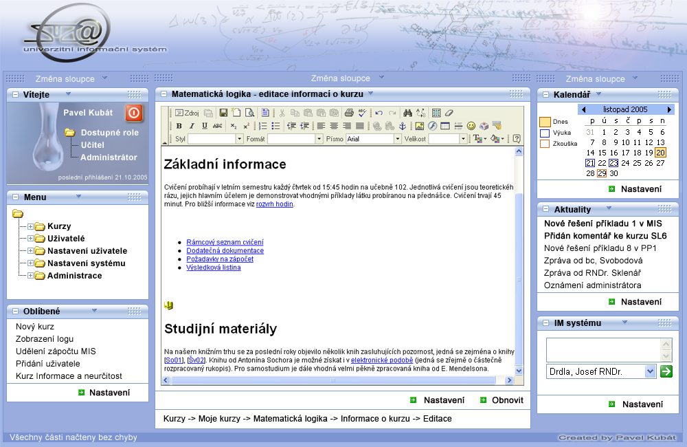 Práce obsahovala vytvoření stránek a jejich umístění. |