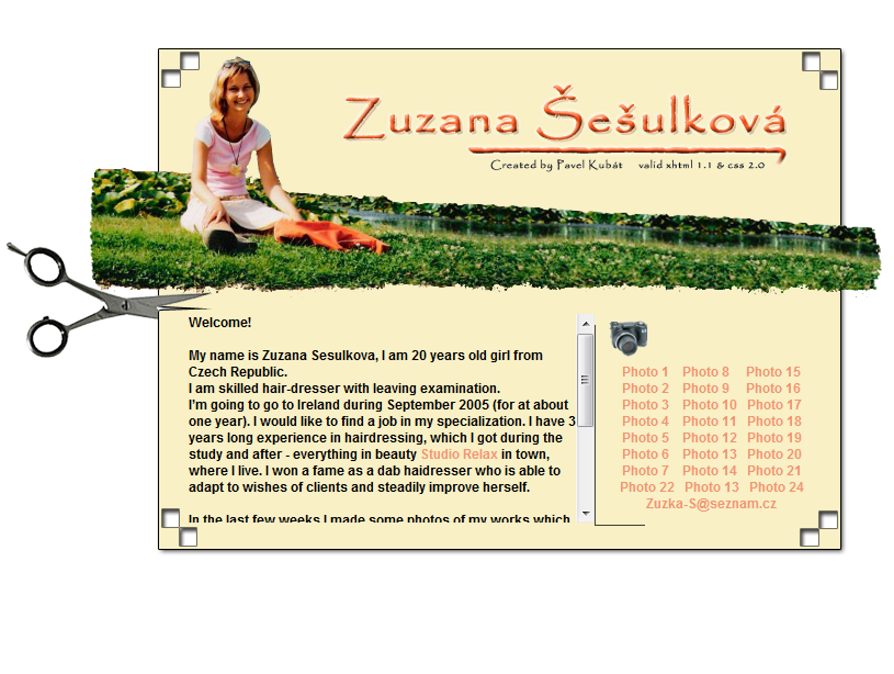 Cílem bylo vytvořit stránky napůl osobní, napůl profesní s prezentací účesů. Práce zahrnovala jak návrh, tak i implementaci a umístění. |